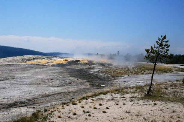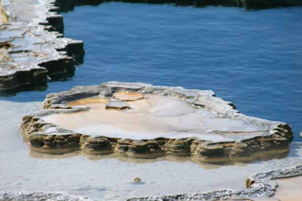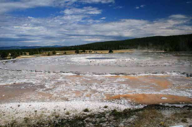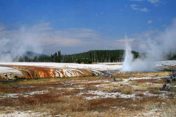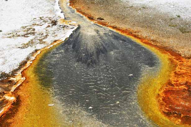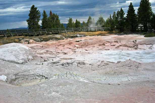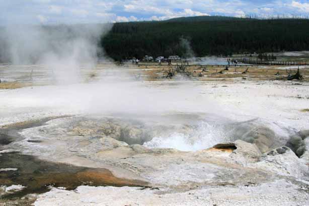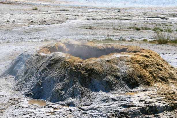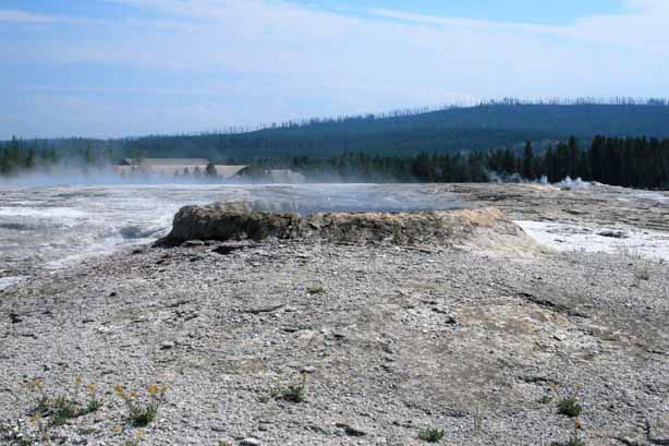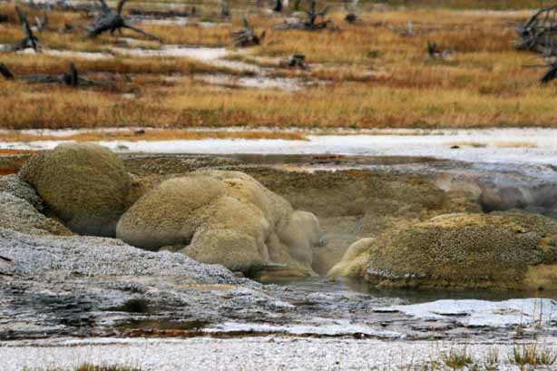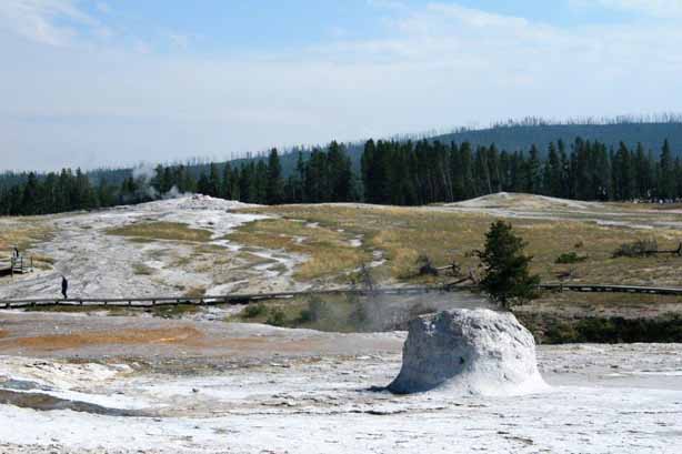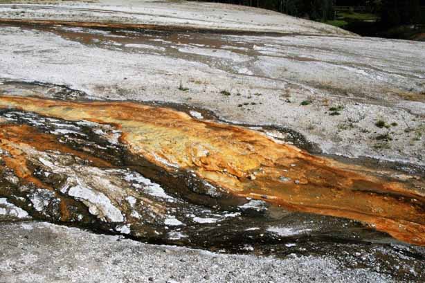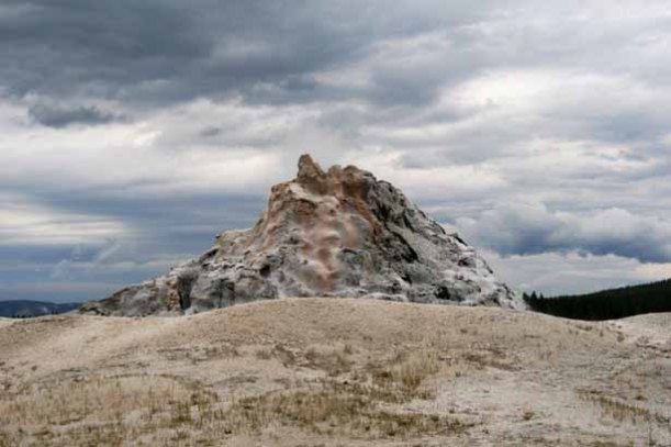 Not far past Great Fountain is White Dome Geyser. It has a massive cone, but its eruption is a thin spray.