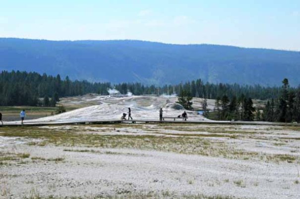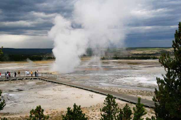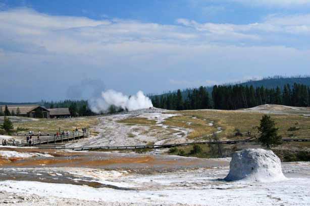 The mile-long Upper Geyser Basin contains the world’s greatest concentration of hot springs and geysers. If you walk the one and a half mile of boardwalk around Geyser Hill and you will almost be guaranteed to see several eruptions.