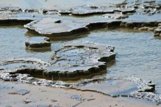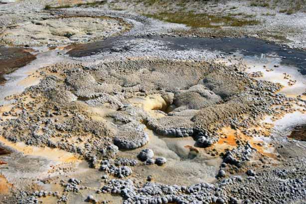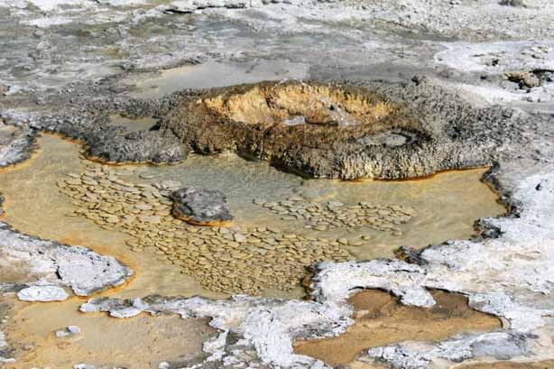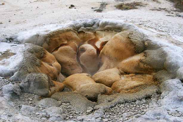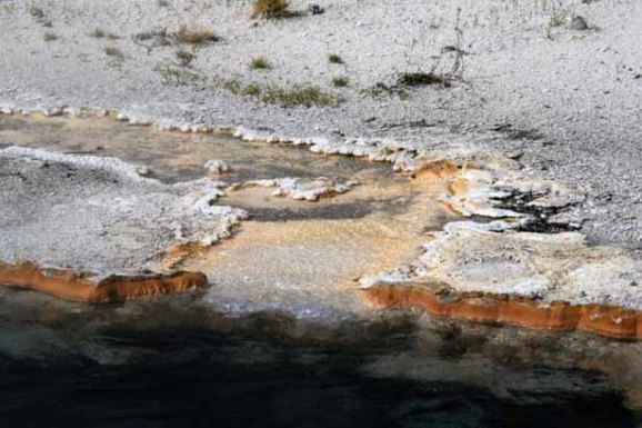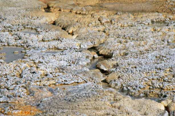 Unlike the travertine we saw at the Mammoth Hot Springs terraces, most of the formations in the other areas of Yellowstone are made up of geyserite, a silicate mineral deposited by hot water, that creates some very delicate and intricate designs and shapes.