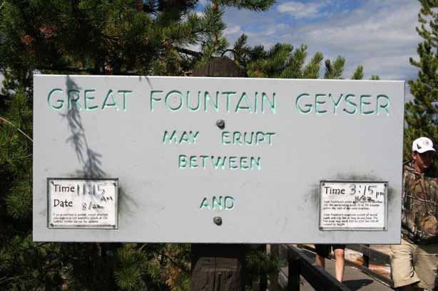 Great Fountain Geyser erupts about every 11 hours and the park rangers post the potential time frame the next blow is expected. If you have time to wait for it the Great Fountain Geyser is one of the best.
