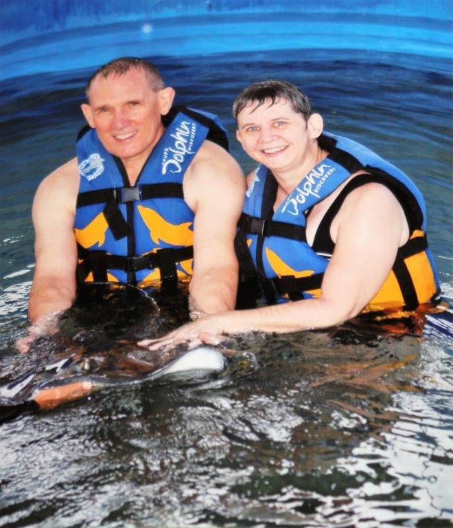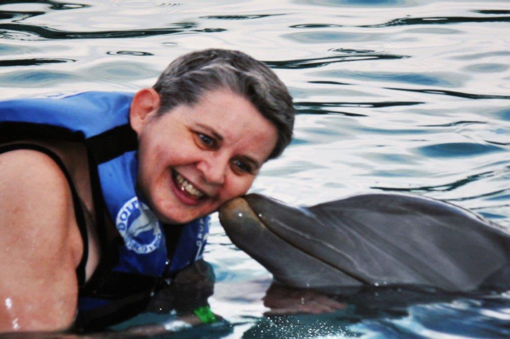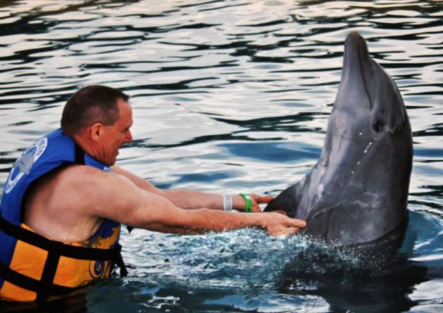 This dolphin was so happy to see its trainer that it followed her all along the poolside as she arrived and again as she departed after our swim.