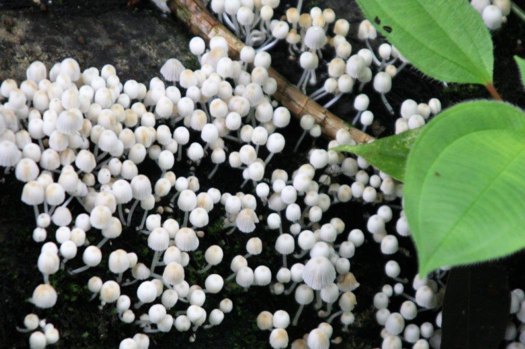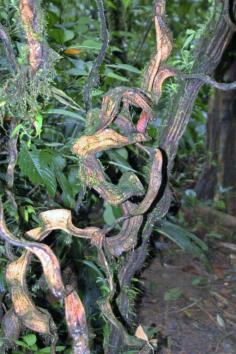 On the walk to the tramway we passed some very tiny mushrooms, lots of twisty branches, and busy leaf-cutter ants that make roadways with edges that run long distances between the nest and the trees they are working on. Fascinating creatures.