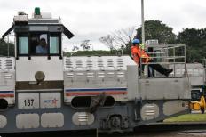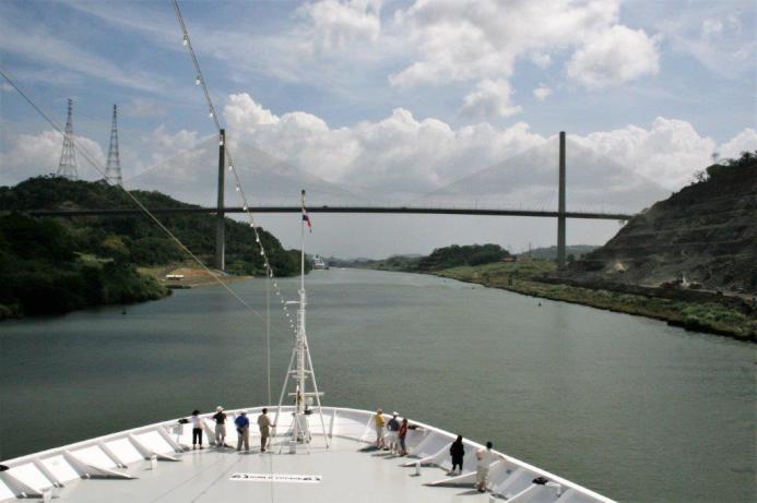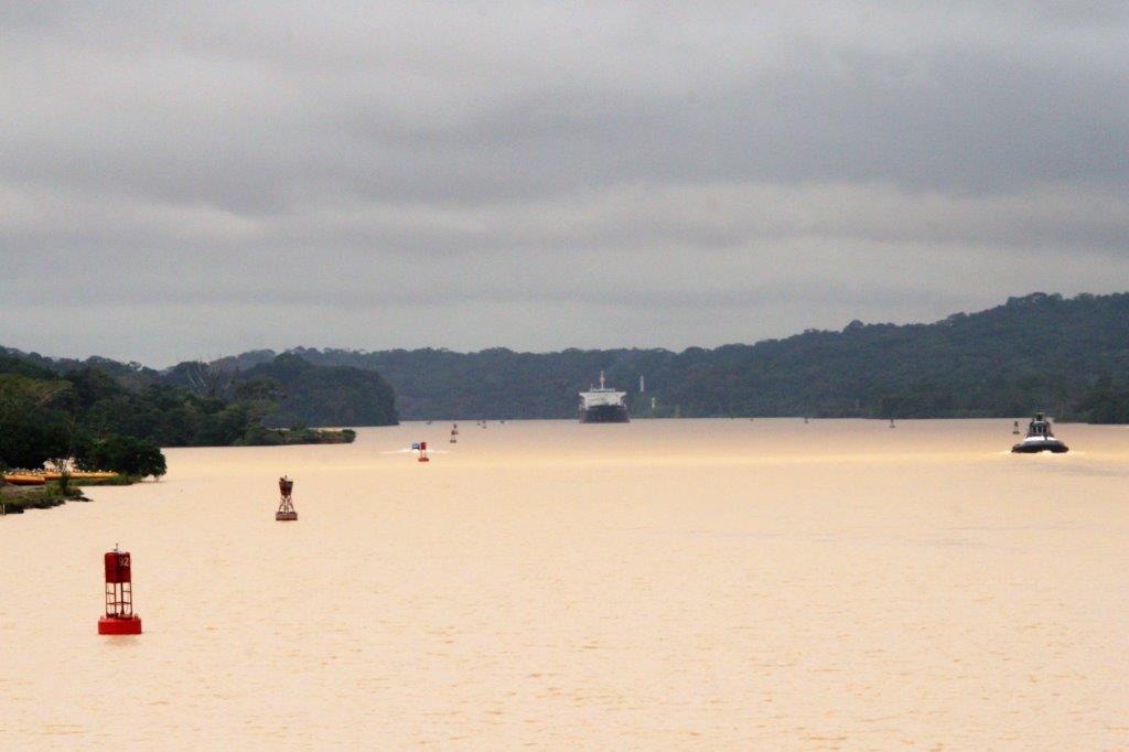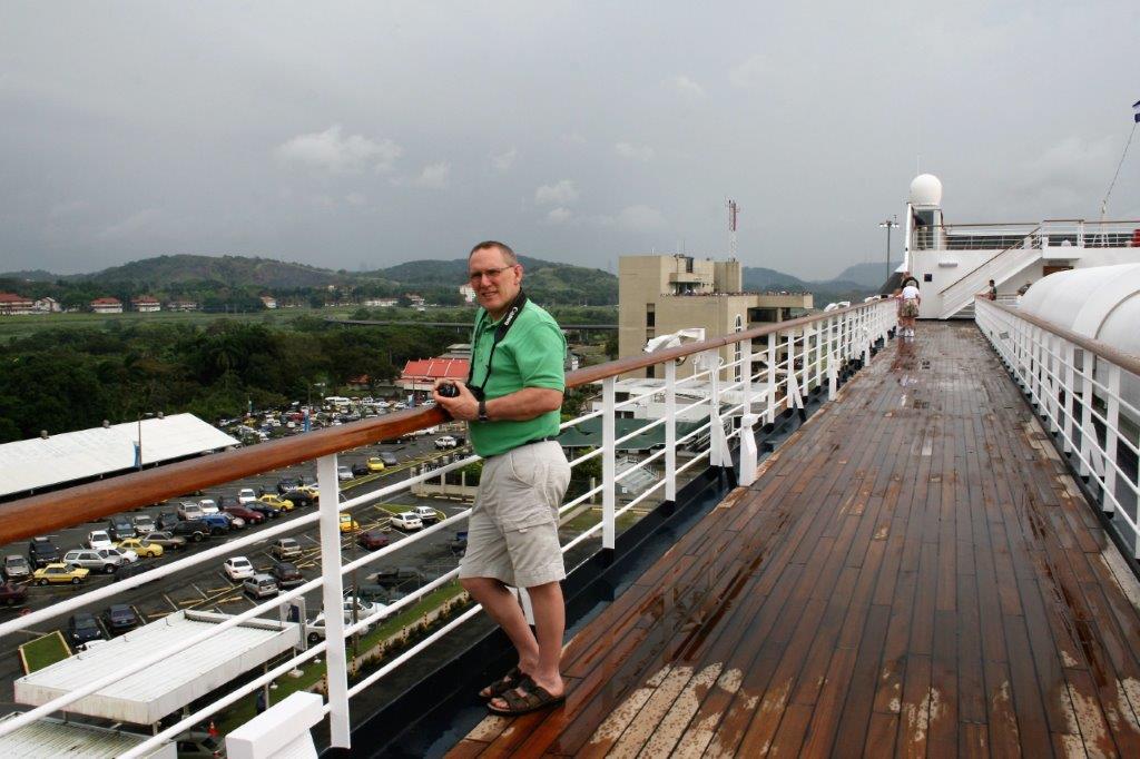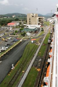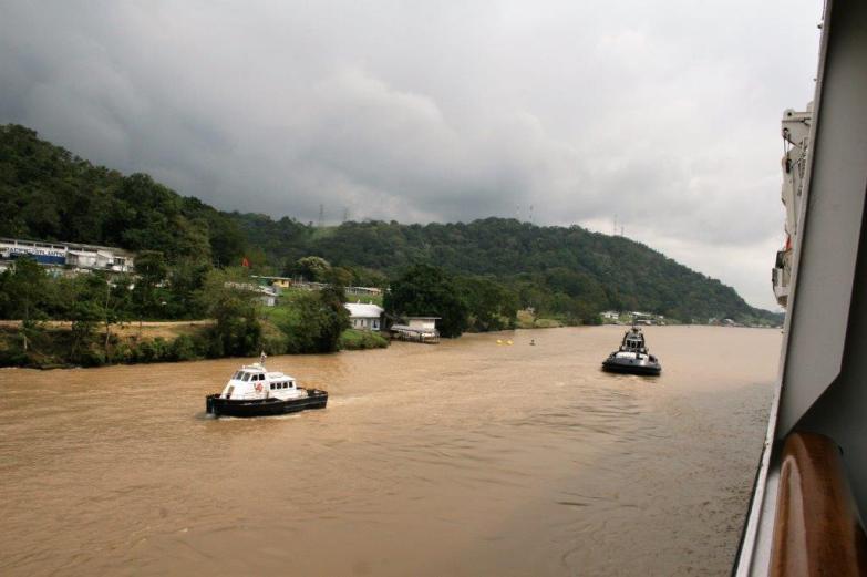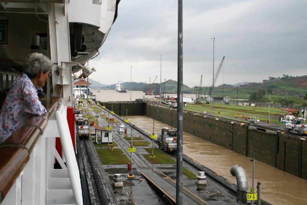 Our ship entered the Panama Canal at 6 am. When we did the crossing the first time we got up to watch the vessel enter the first set of locks. This time we were too lazy so we didn’t get up and on deck until 8:30 or so. It was a typical tropical day with high temperatures, high humidity and rain off and on. The biggest difference between our 2009 canal crossing and this one in 2011 was the water. Obviously there had been lots of rain and lots of run-off as the water was brown. Still, watching the electric mules guide the ship and the huge doors on the locks open and close as we were raised to the level of Gatun Lake and down again to the Pacific side was still pretty interesting and we spent much of the day on deck.