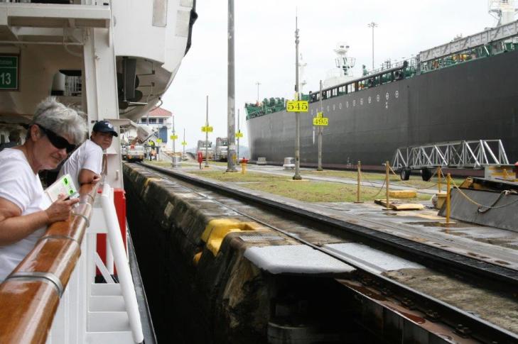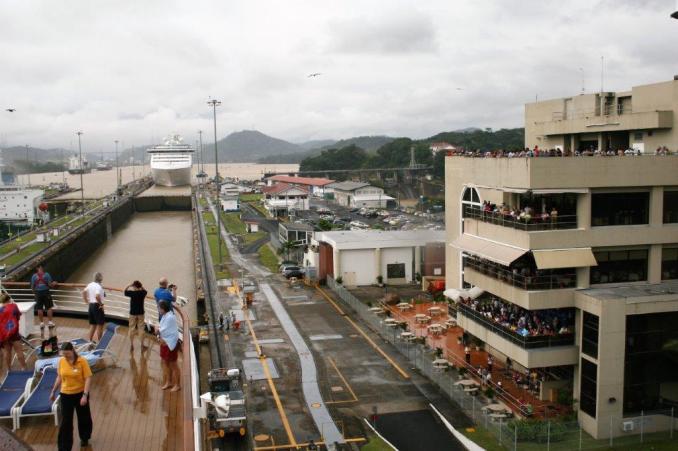 The visitors center at the western side of the Panama Canal is a popular tourist spot. All of the viewing decks and roof are packed with people all day, every day, watching the ships enter and exit the locks.