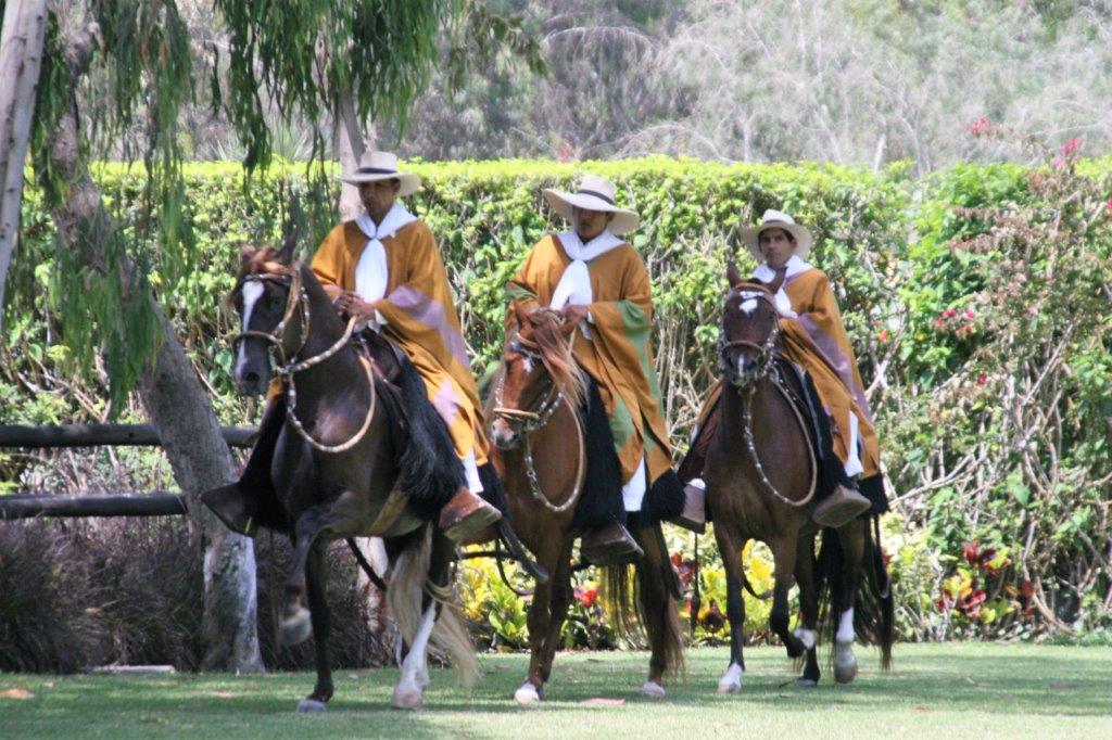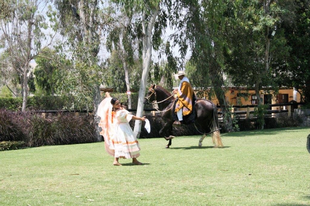 There is river that flows into the ocean not far from the temple ruins and there is fertile river bottom land where Mamacana Hacienda is located. It is a beautiful Andean-style ranch that breeds, raises and trains Caballo de Paso horses, a breed unique to Peru. The breed was protected by governmental decree in 1992 and were declared a Cultural Heritage of the Nation. We were welcomed at the gate by the owner and walked a roadway between two rows of Paso horses with a mariachi band playing at the end. (Truth be told, it was the chance to see these lovely horses that made me take this tour. I loved the museum and the ruins, but I was thrilled to see the horses.)