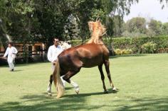 A mare with her champion three-week old colt were brought out so we could see that even young animals exhibit their unique gait. The horses don’t trot, but move from a walk, to the four-beat lateral gait, then to a canter.