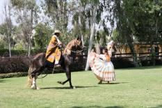 After the dancing the men provided a display of the Paso horse’s unique gait and riding skills. This four-beat lateral gait (left fore with left hind, right fore with right hind) makes for such a smooth ride you can carry a water glass on your head. It is not a trained motion, it is inherent in the breed and even young foals move that way. They were absolutely beautiful animals.