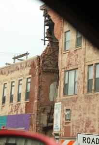 The front of this old building has open businesses in it, but the back has a serious problem.