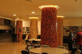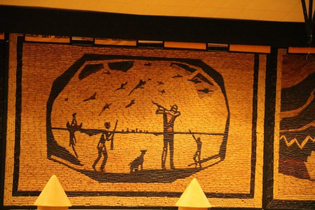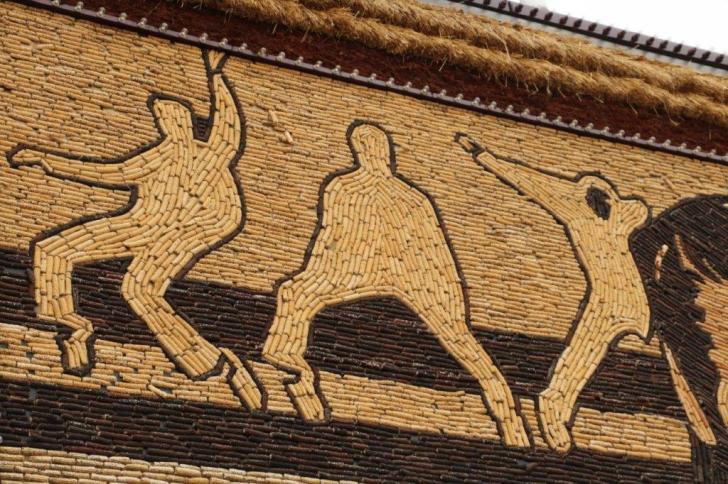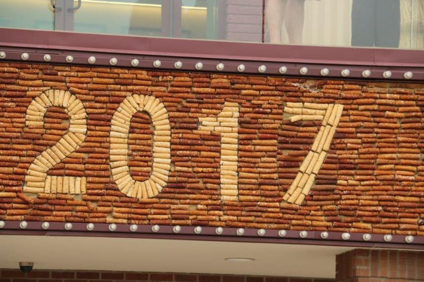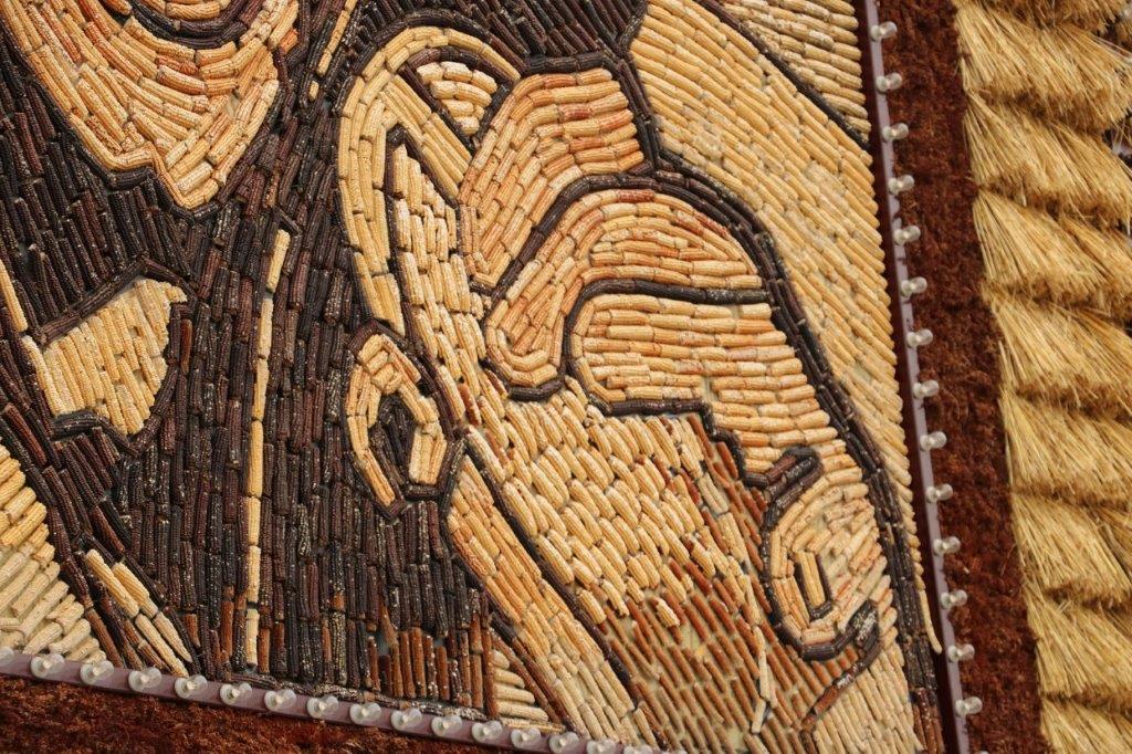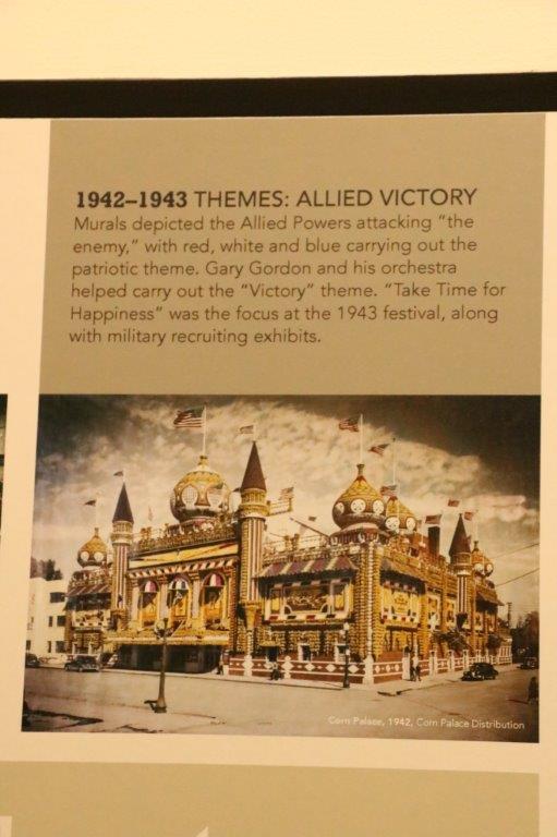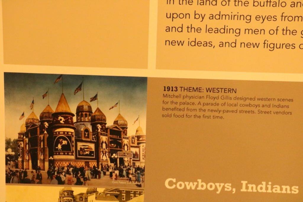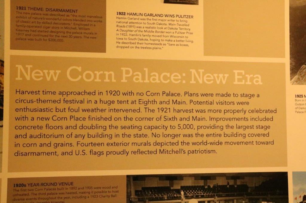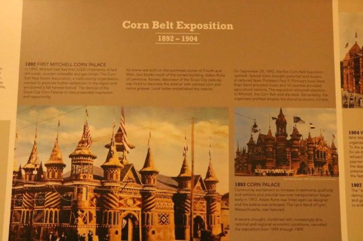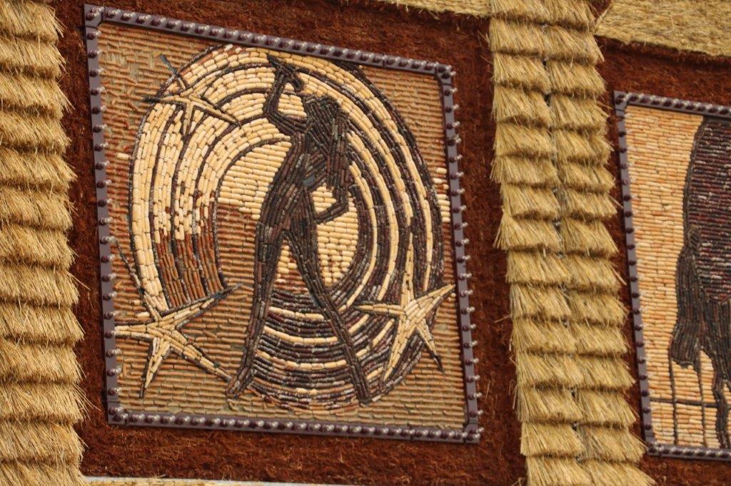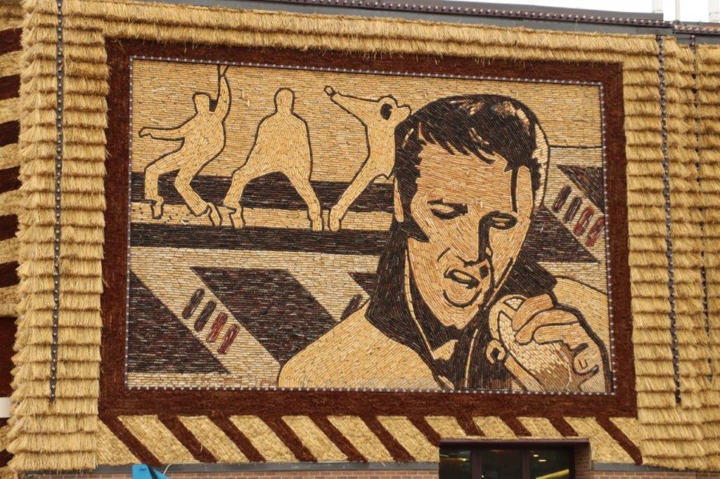 The first Corn Palace was built in 1892 to showcase the rich soil of South Dakota and encourage people to come here. They cover the two street-visible exterior walls with ‘murals’ created entirely from different colours of corn cobs, straw, and grasses. Every year the murals change and the theme changes. It was decided this year to keep the 2016 murals for another year so they are just changing one of the dates on the marquee and all of the grasses to give the palace a fresh look.