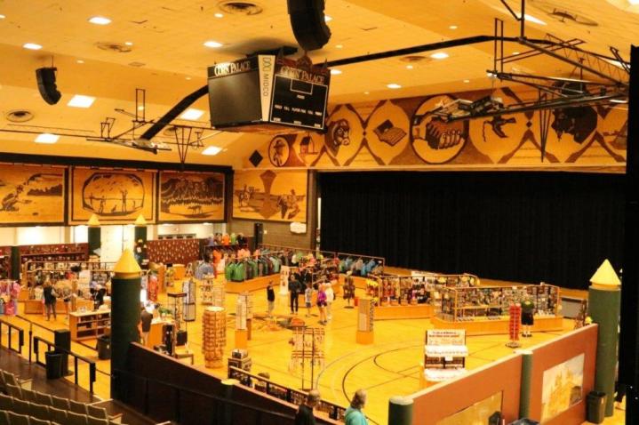 The basketball court on the arena floor was full of merchandise, but later this month, during the Corn Festival (Aug 23-27) there will concerts each night by Judd Hoos, Eddie Money, Diamond Rio, and Gary Lewis. The Corn Festival is huge; with amusement rides and contests and street parties.