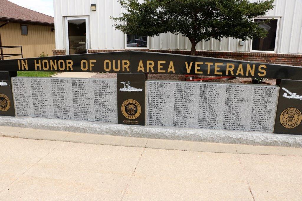The town of Spence had a large new veterans memorial outside the fire department (there was a cache hidden in the base of a lamp post)