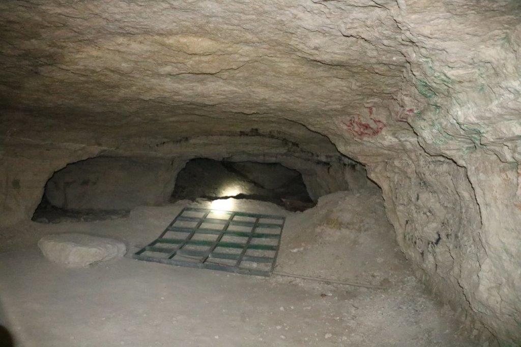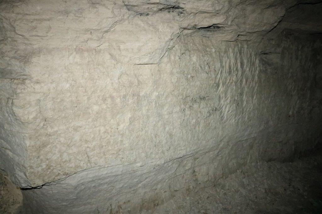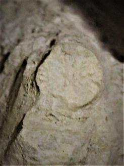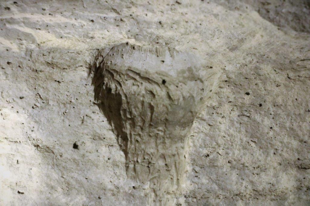 There were a few fossils in the walls; none of vertebrates as chalk dissolves bone. They are hard to make out with the white-on-white.