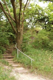 We used the much more recently built stairs at the back of the peak to go up but went down the 121 very worn, very unevenly spaced, railway tie steps at the front.