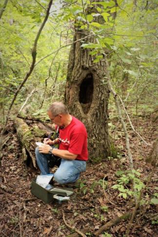We hiked the first loop of the Blue Trail (on the right of the map) and picked up a couple of caches hidden in the forest.