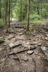 On the way we stopped at a viewpoint/conservation area and walked 350 m down one of the trails to find a geocache. (In case you haven’t figured it out yet we are hoping to find at least one cache each day of our trip. Sort of a personal goal thing.). We have learned since we got here that southern Missouri has lots of rocks. Large walls of them along the highways, cliffs in the forests and many rocks and roots on the trails.