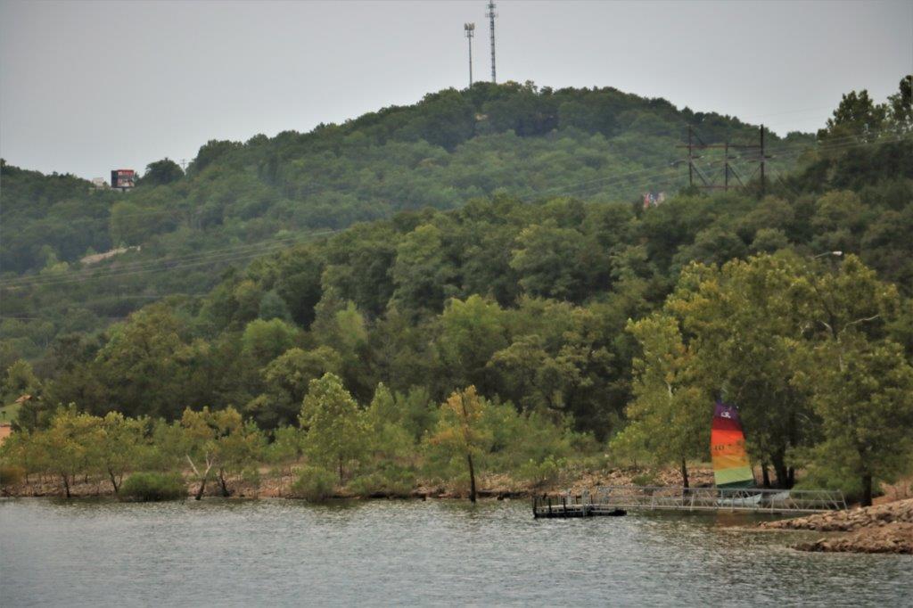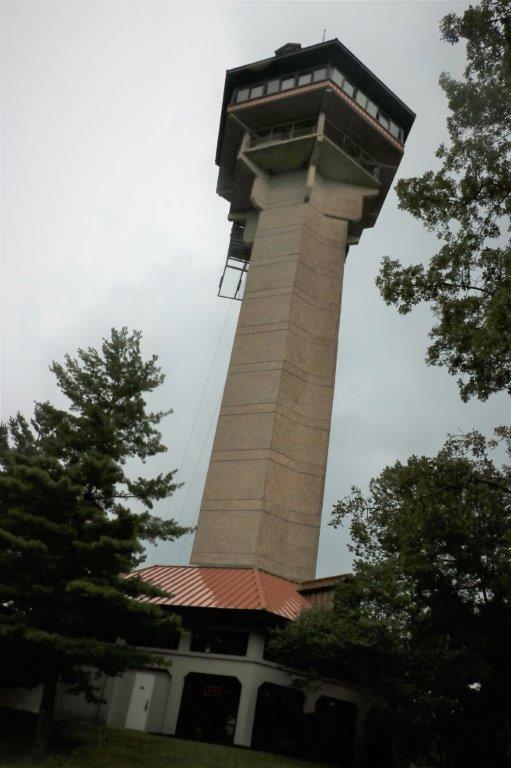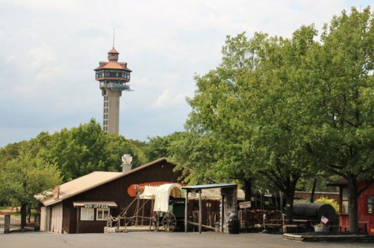 At the Shepherd of the Hills complex is Inspiration Tower, a 230′ observation tower and start of the Vigilante Extreme Zipline. The zipline was not operating today due to the wind and predicted storm but we took the elevator to the top to see what we could see.