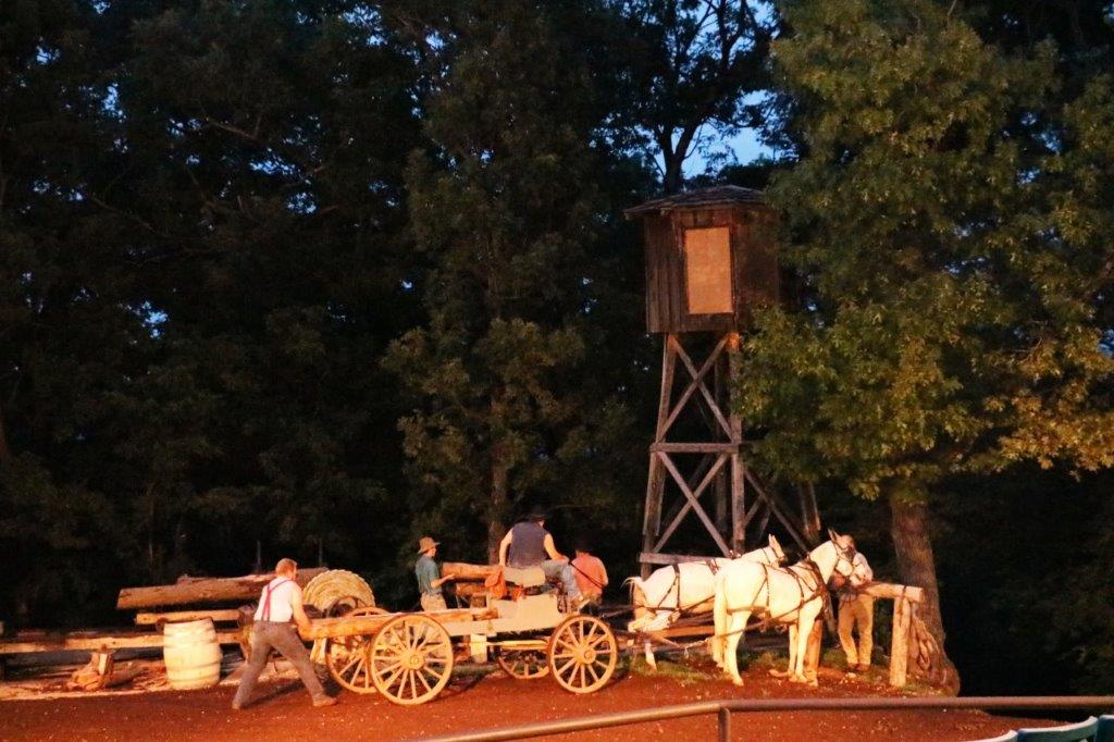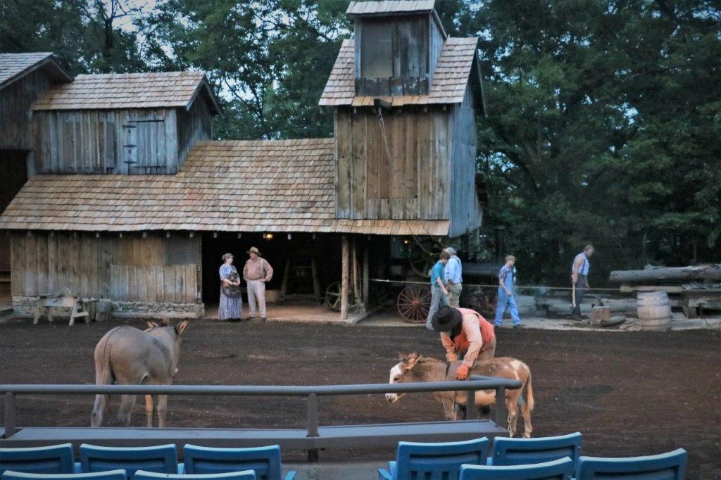 There were gun fights, horses, donkeys and mules, a building fire, romance and fistfights and redemption. What more could you wish for? It was a good story. Some of the characters were a bit ‘over acted,’ but we had a good time and enjoyed the show. (John and I estimate that there is seating for about 1700 people, although it wasn’t very busy last night.)