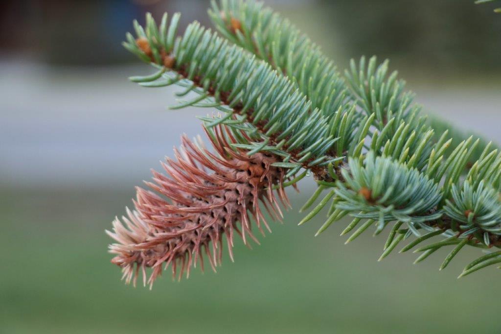 And the opposite way in the evening. The cache was hidden in a very small vial near the trunk of a bushy young Blue Spruce tree. Very prickly. It was just growing it’s cones. Which were also very prickly.