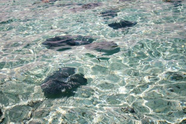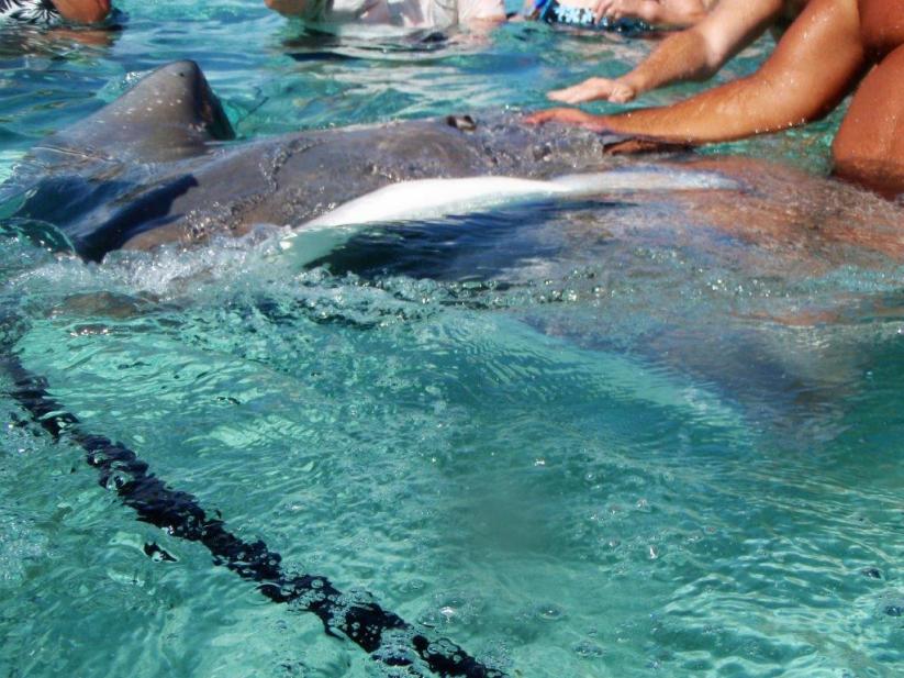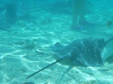 We stood in waist-deep water and the rays and sharks just swam around us. The rays are very soft and move effortlessly through the water. They were beautiful. It was hard to get a photo of them as they were constantly moving.