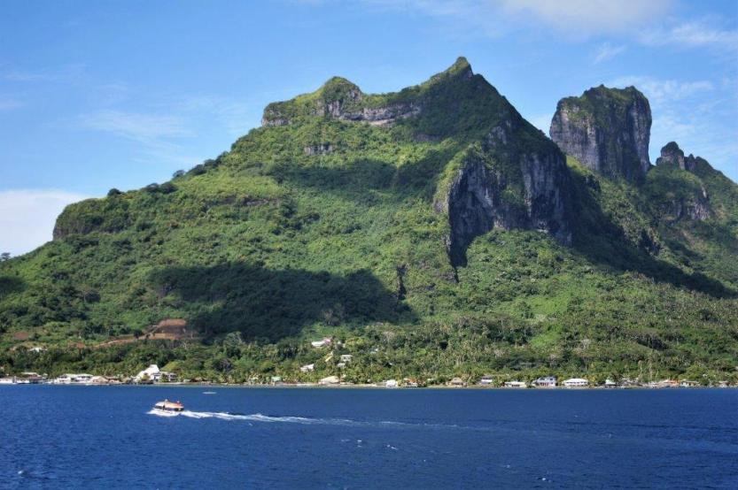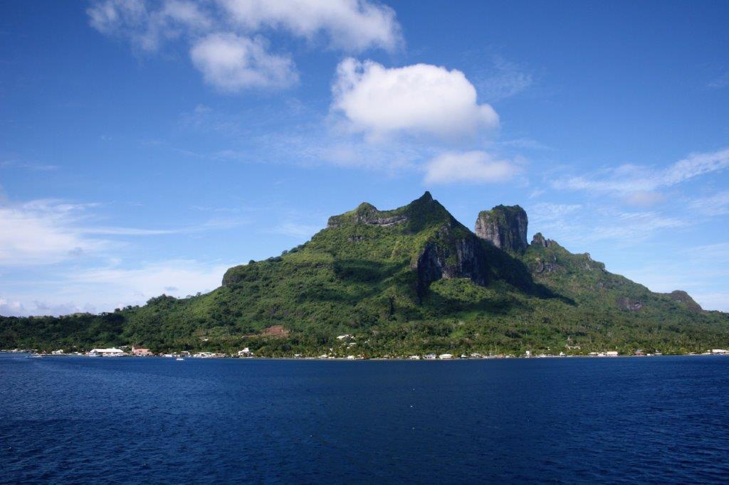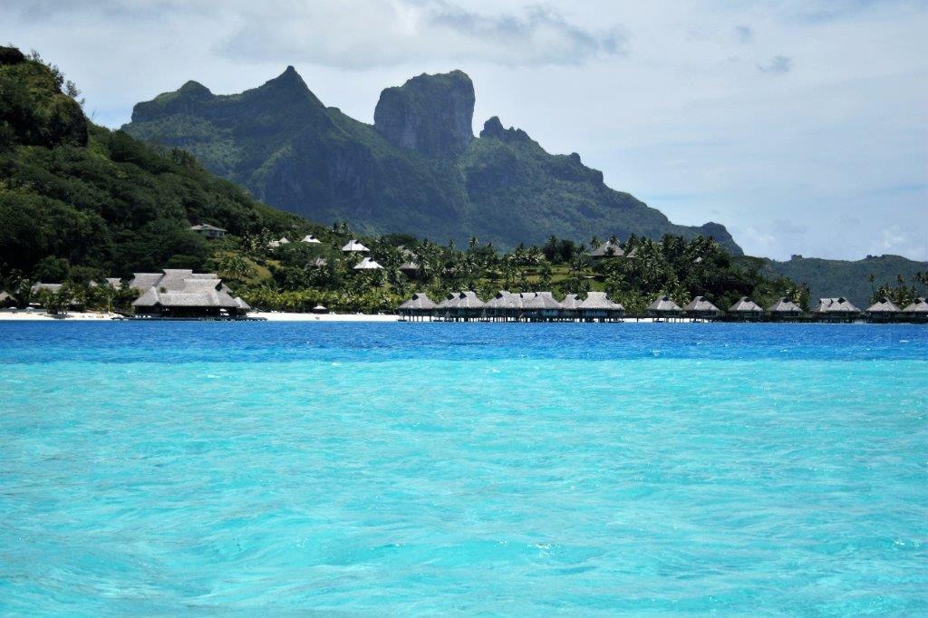 What is not to love about Bora Bora? Novelist James Michener described Bora Bora as “the world’s most beautiful island.” The island is almost entirely encircled by a reef and the water in the lagoon is a striking turquoise or jade green depending on the sunlight. The entire island is 19 miles around. In the center of the island Mt. Otemanu soars 2,385 feet high with almost perpendicular sides. It has never been climbed.