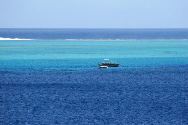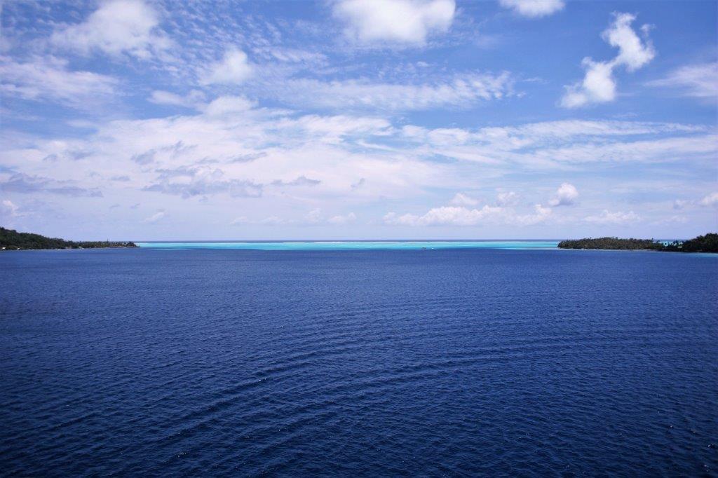 There is only one opening where a tender or small boat can enter and exit. The ship was already at anchor outside the reef when we got up at 6:15 am to watch the sail-in so we had plenty of time for breakfast before our tour.