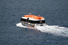 I have a small waterproof digital camera that I have attached to a lanyard that hangs around my neck. This leaves my hands free to swim and makes it easy to take photos whenever I want. Holland America always has a ship staff person on every tour to monitor things and make sure all goes well. Bobby, a young man from the photography shop, was on this tour and when I was about to get back onto the launch he asked me if my camera was really waterproof and didn’t need a protective case. I told him yes it was and he asked to see it. When I gave it to him he immersed the camera into the water and snapped a photo of himself standing overhead. He was a really nice fellow and we were on several tours together on the way to Sydney.