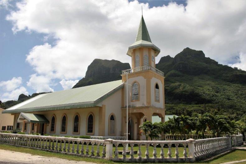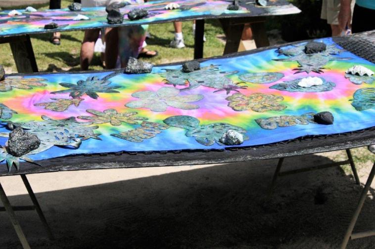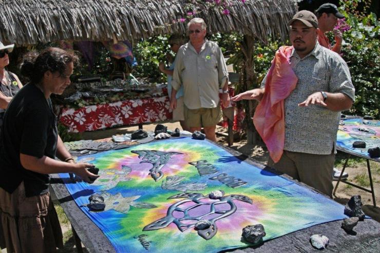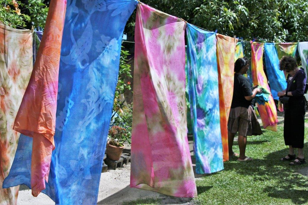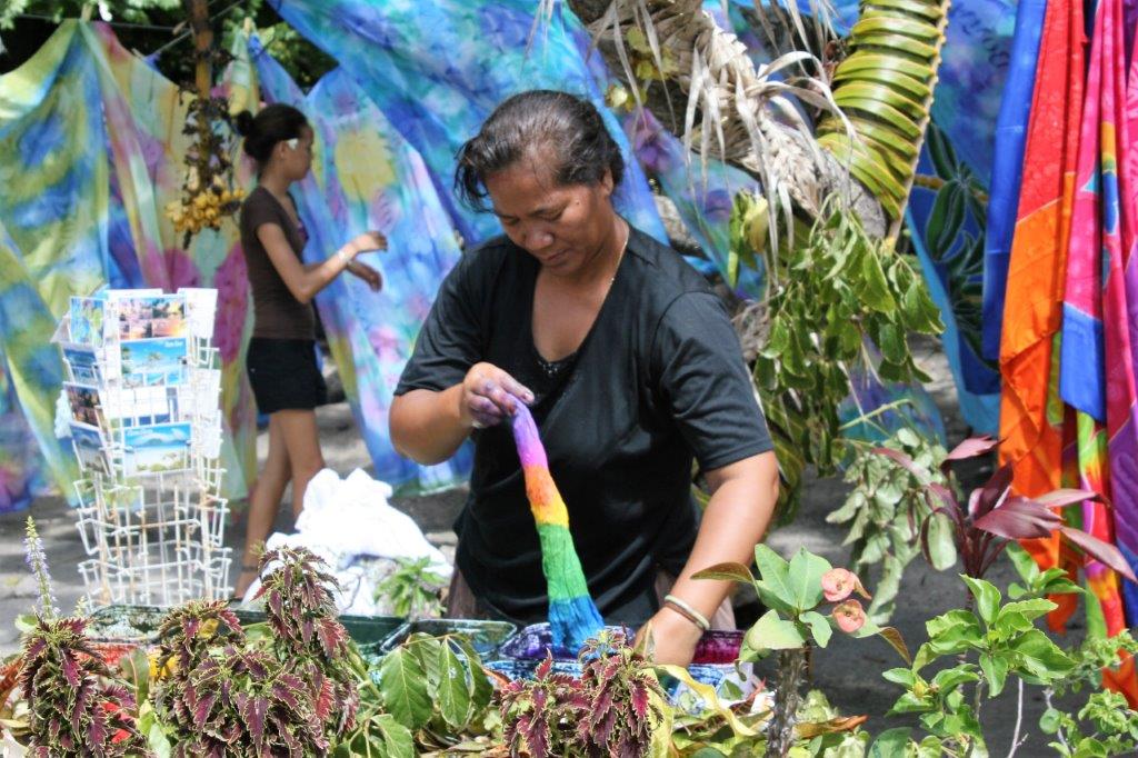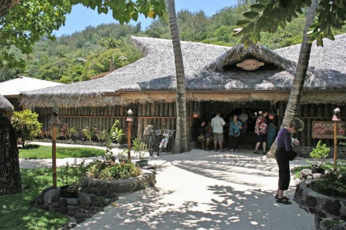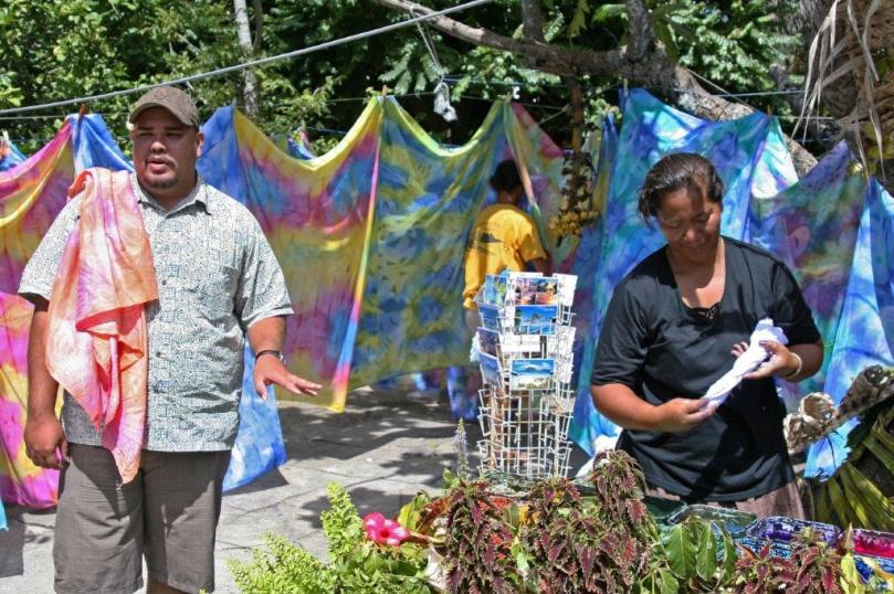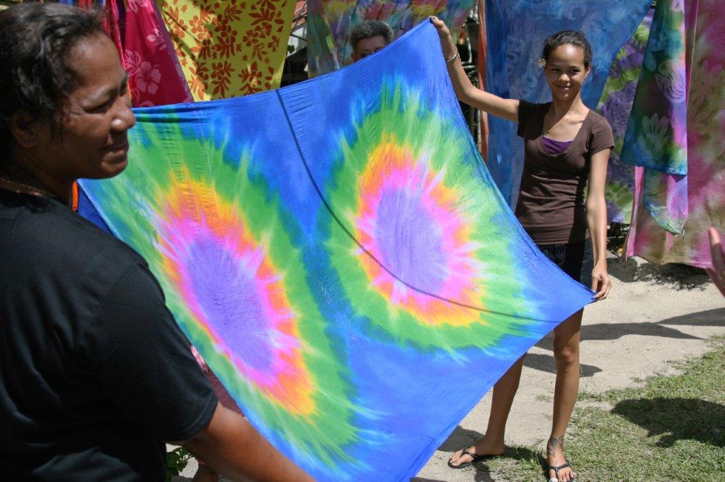 Another day in the tropical paradise of Bora Bora. Our tour was 2 1/2 hours long and we drove the 19 miles around the island. Our first stop was an artisan shop where the ladies make pareos (tie-dye sarongs). They have the process down to an art and every pareo is unique because they use different colour combinations of dye and lay different shapes on the cloth was it dries. Very clever and very pretty. Several ladies made purchases which pleased the island ladies a lot.