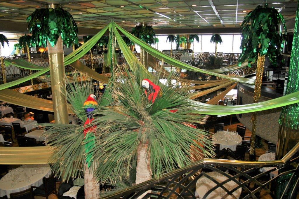 We had a day at sea before our next port-of-call, Rarotonga, Cook Islands, and the formal night theme was Tropical Paradise. There is nothing half-hearted about Ketuk’s team of decorators for special nights. They always do a superb job.