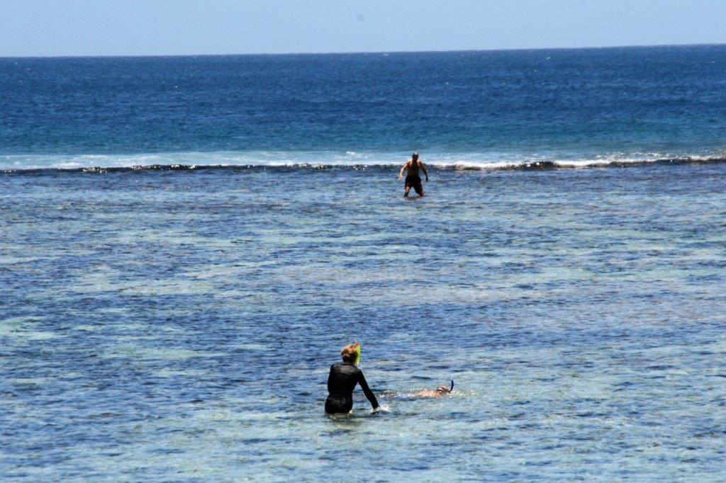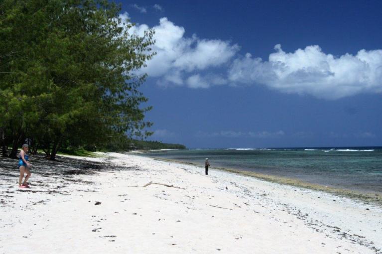 The beautiful white sand beach of Otuhaka Beach stretched for several kilometers and had a very shallow protecting coral reef that kept the crystal clear water nice and warm and allowed you to walk or swim for a several 100 meters to the breakwater.