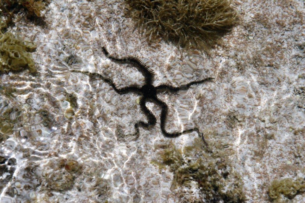 We had our bathing suits on but decided to just wade along the shore and watch the spider starfish, look for shells, and check out the delicate aquatic plants.
