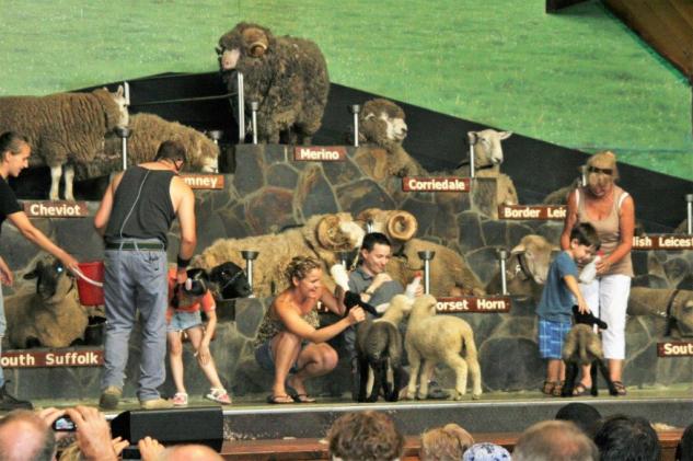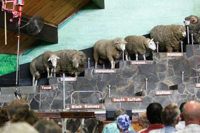 After we toured Rainbow Springs we were driven the short distance to the Agrodome where we were introduced to all of the 19 different breeds of sheep raised in New Zealand – some breeds are for meat (8) and others are for the wool (11). (And it is true there are more sheep in New Zealand than people but the ratio is not a large as it used to be. In 1982 there were 22 sheep for each person – that’s 70 million sheep. 2016 figures came in a 27.6 million sheep or 6 per person.)