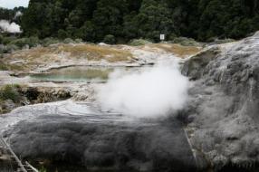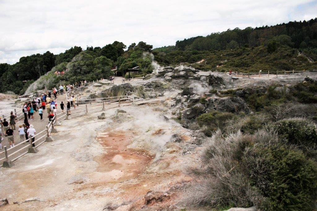 The Rotorua resort and wilderness area is built atop an active volcanic bed. Nearly everything is steaming and gurgling. It is also the heart of Māori lands. The Arawa people settled in this area in the 8th century believing the bubbling ground and hot water to be divine. They used the pools for cooking and bathing. The arrival of Europeans turned the area into a health spa.