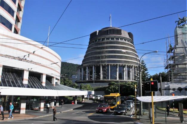 The New Zealand Parliament Building, affectionately referred to as The Beehive.