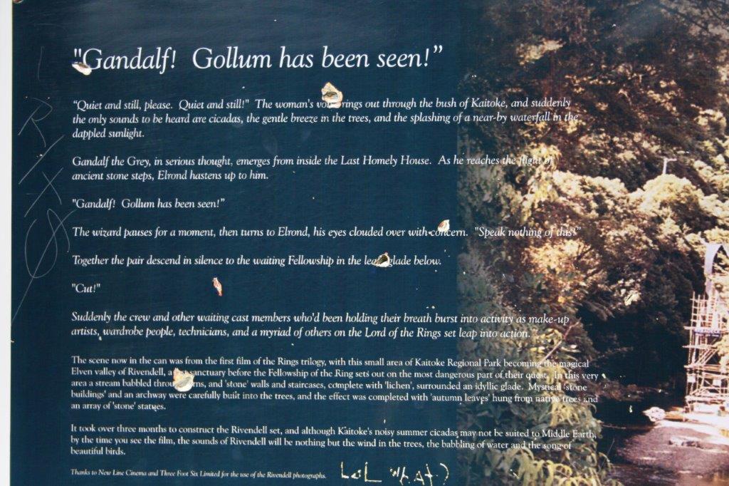 We went to several film locations, which as I said, were mostly parkland with trees. Peter Jackson used 48 different locations for the movies and built fortresses and waterfalls and towns and battle grounds, but everything he built he had to take apart and restore to the original condition so there were no ‘sets’ to see. Todd would tell us which scene from the film was made at each place and pass around photos from the movie to show what it looked like in the films.