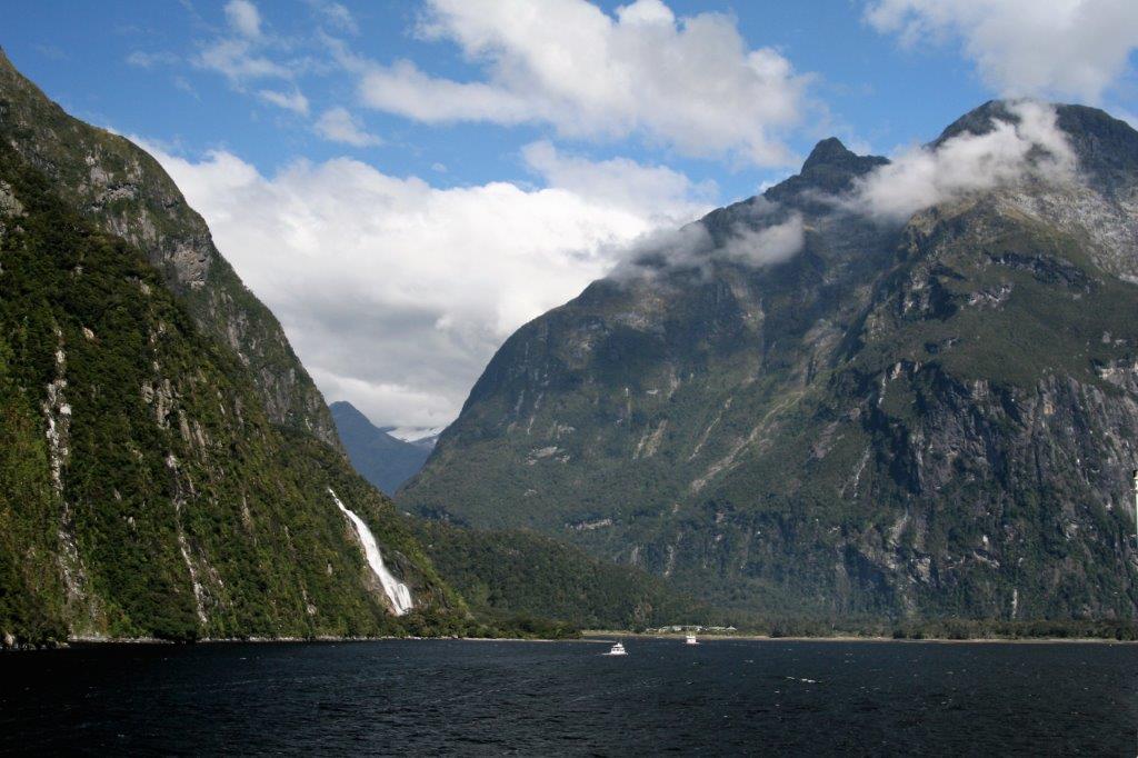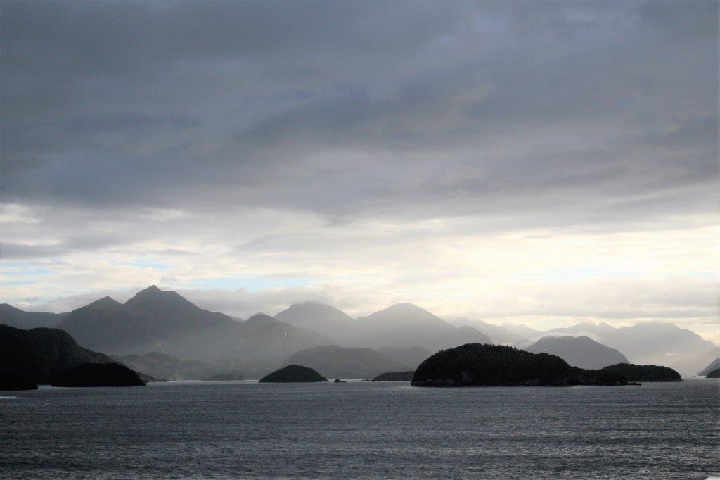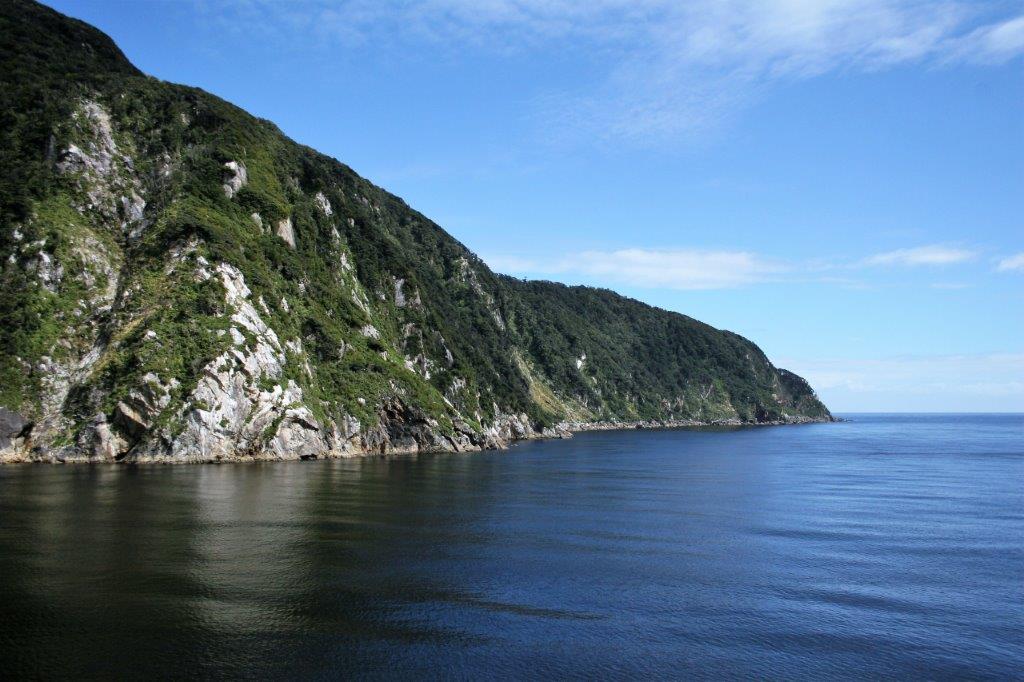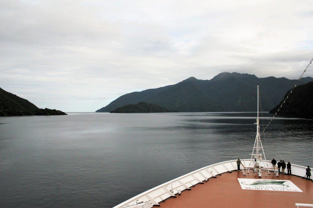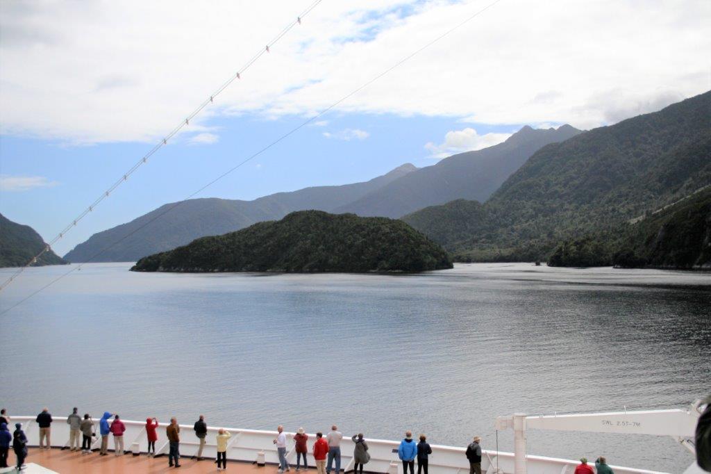 At long last we had a day with nothing to do. Theoretically, that is. The ship spent the day sailing into and then out of three of the sounds of Fiordland National Park which is located on the western coast of New Zealand’s South Island. This coastline is along the notorious Tasman Sea; long known as one of the roughest bodies of water in the world. The sea is 2,000 km (1,200 miles) across and 2,800 km (1,700 miles) from north to south. This large expanse of open water is referred to as The Ditch by the Australians and New Zealanders. To go ‘across the ditch’ is to go from one country to the other.