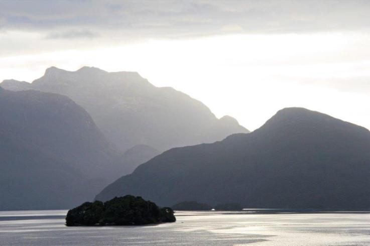 I was startled awake in the early morning by a very loud bang that reverberated up the decks. Our cabin was on deck 3 of the passenger decks (about half-way up the ship) so we had been slammed with a pretty large wave in order for me to feel and hear it that much. Consequently I was up and had finished breakfast as we sailed into Dusky Sound at 8 am.