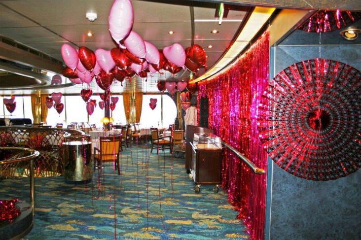 Since it was Valentine’s Day, it was a formal night and the decorations were up in the dining room and around the ship.