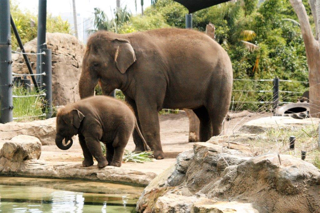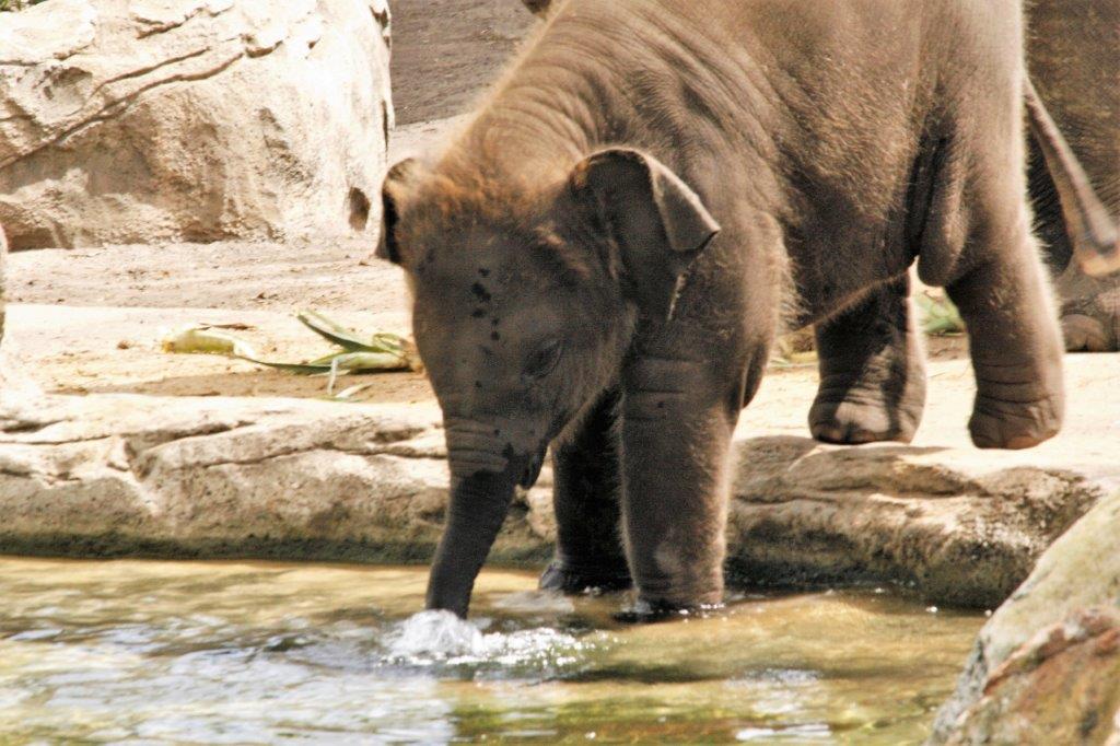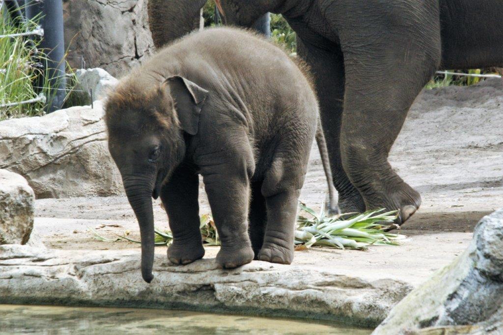 We spotted this baby elephant from the gondola on our way into the zoo and it was fun, later on our walk around to watch it investigate the water pond.