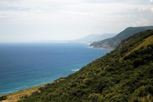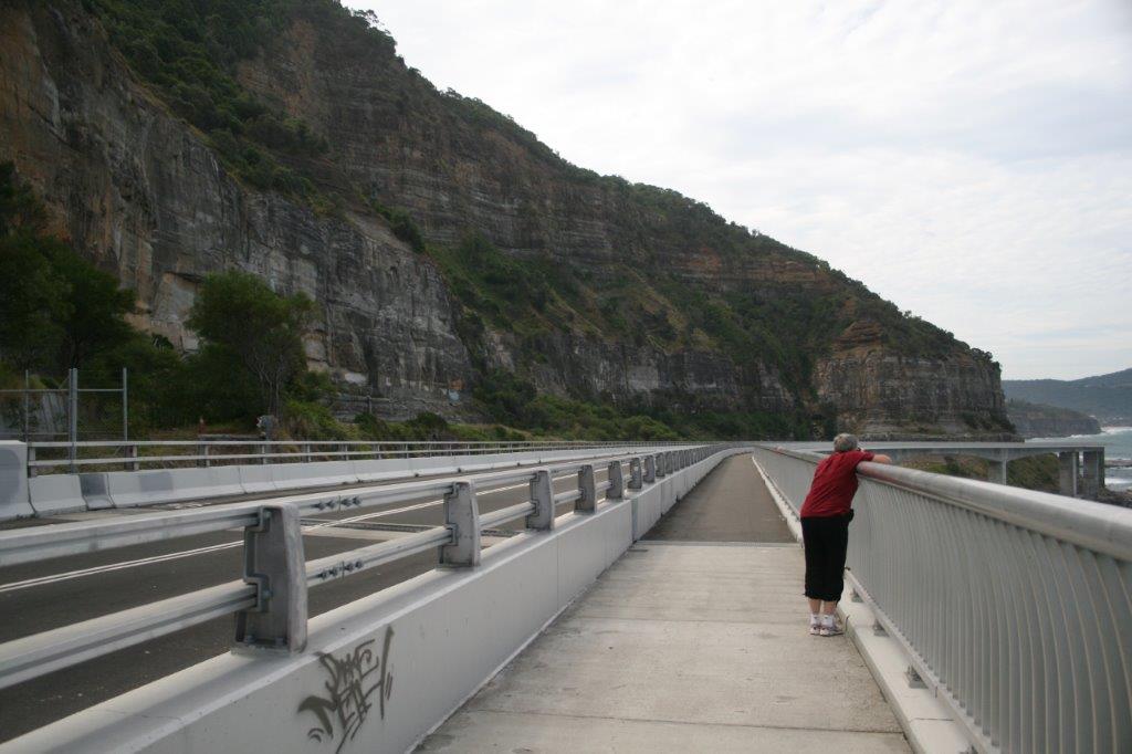 There was a lovely ocean view from Otford Lookout. And we got our first – albeit distant – look at the Sea Cliff Bridge that we would cross awhile later.