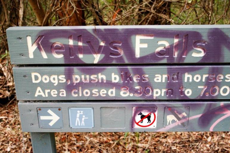 The small Kellys Falls necessitated a little hike. And the way the rocks and pathway were positioned you could hardly see it anyway – sort of similar to the sign.