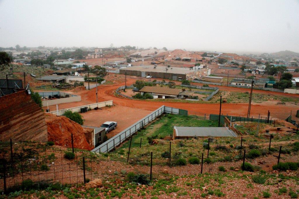 The fog lifted enough that we could get a bit of an overview of the town from the top of the hill where ‘The Big Winch’ sits. The population of Coober Pedy is about 3,500 people, of which 60% are of European descent. The other 40% is made up of about 45 different nationalities so there is a lot of diversity in a small place.