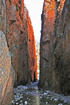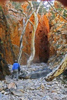 On the way back to Alice we hiked in to see Standley’s Chasm. It had been closed for a week due to high water and had just been re-opened. This time there was no trail at all and no little arrows pointing where to go either. We literally just kept walking and climbing forward hoping we were going the right way. We criss-crossed the creek numerous times and then suddenly, right in front of us, were two vertical cliffs several hundred feet high with a very narrow passageway between them.