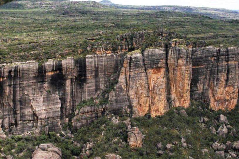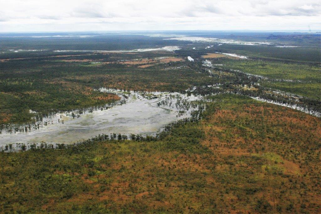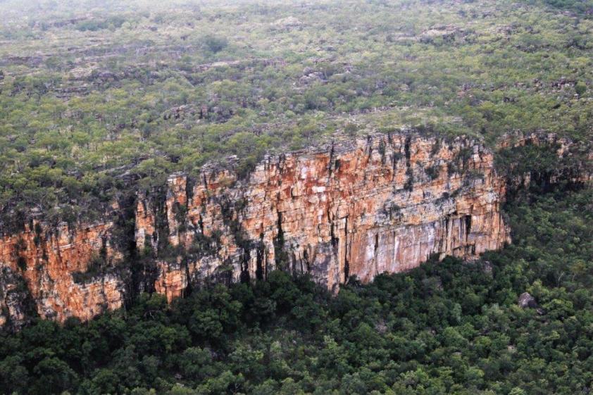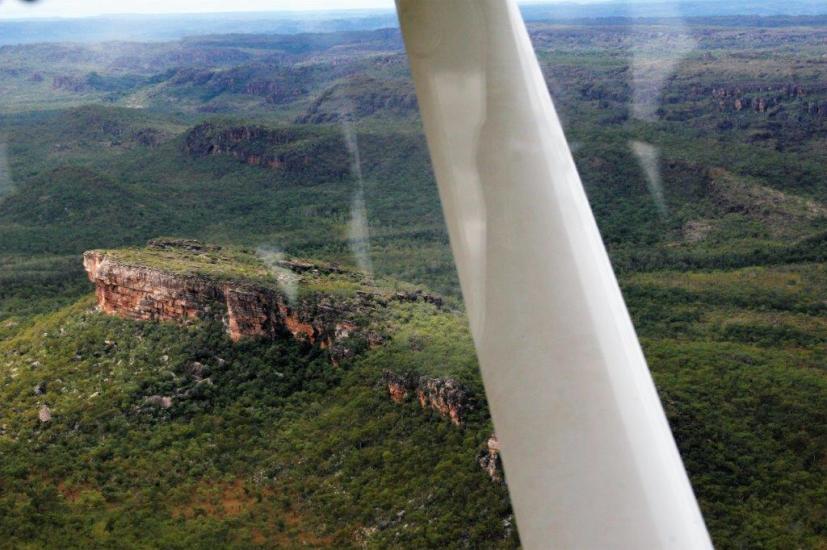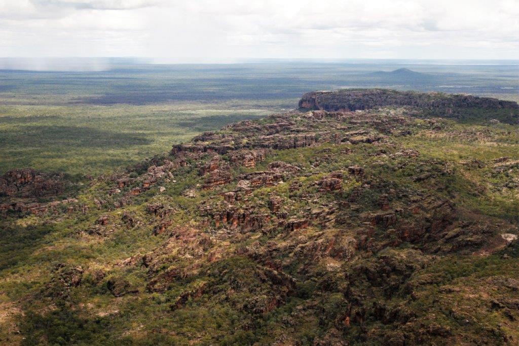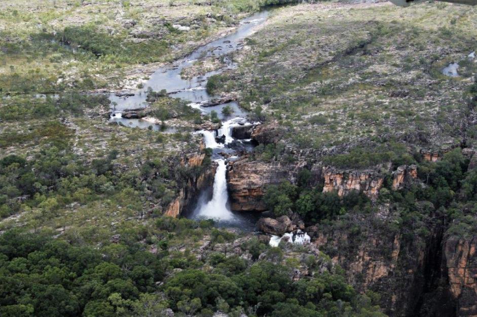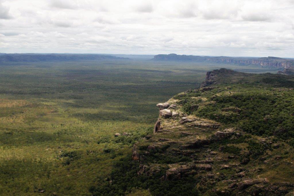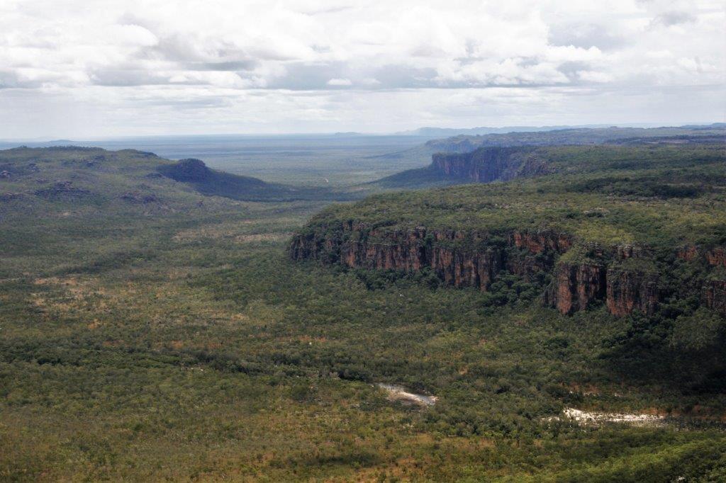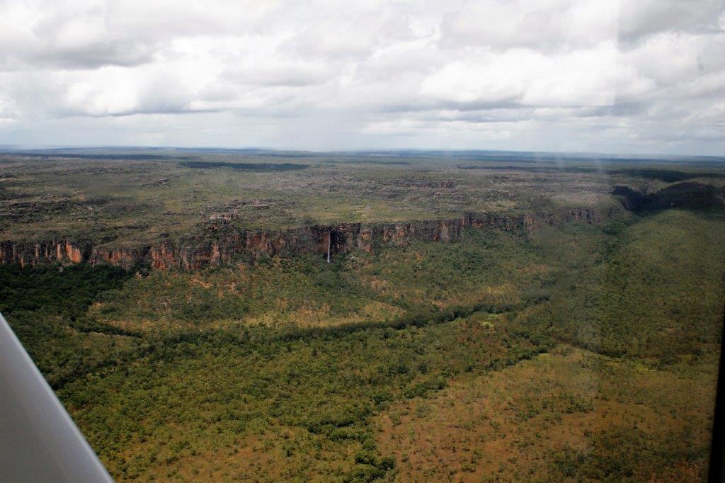 Nick, our pilot, flew out to the escarpment and along the way we got a good look at the vast size of Kakadu, which is 200 km from north to south and 100 km from east to west – about half the size of Switzerland, as well as a bird’s-eye view of all the overflowing rivers and water pools.
