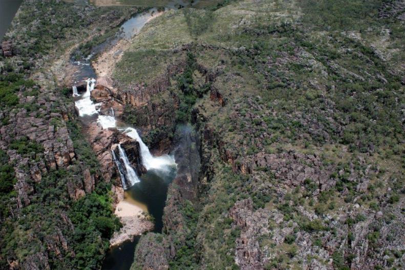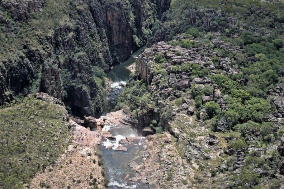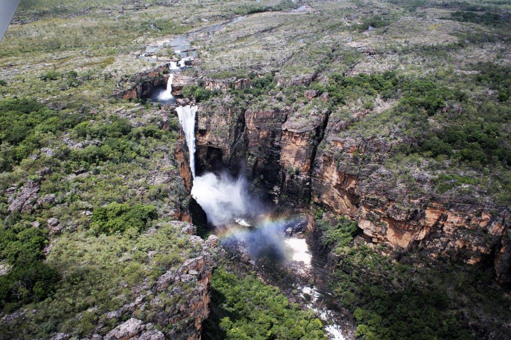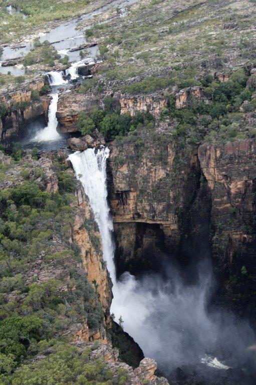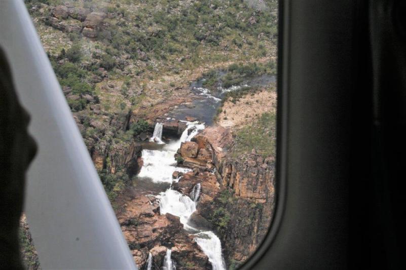 We flew over Jim Jim Falls (in a normal year we could have driven out to Jim Jim). We got a bit of a look at the semi-flooded road from the plane and really understood why the roads were closed. The escarpment is many kilometers long and extremely high. All the waterfalls, of which there were many due to all the rain, drop straight down the rock face for hundreds of feet. Nick was great. He would fly past each of the waterfalls twice in each direction so everyone could get a good look and photos.
