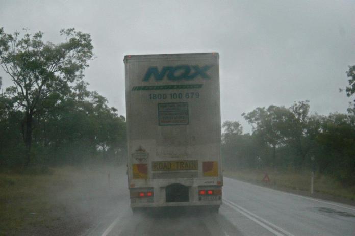 The signs on the back of the truck say, “Think twice before overtaking” and “Your passengers, their lives, your choice.” The road trains are very long and there is rarely enough clear road to give sufficient time to get safely by them.
