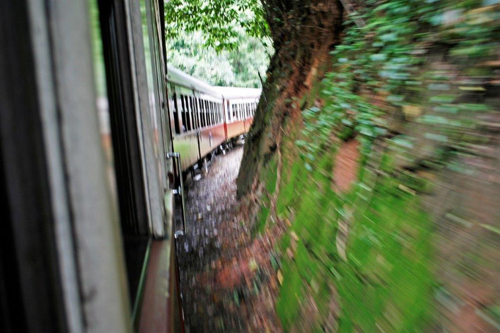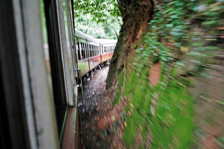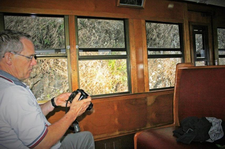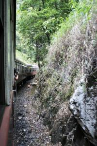 It started to rain when we were part-way up the mountain pass but it was still a very scenic trip. There are 15 tunnels (cut by hand with pick and shovel after an explosive charge lossened the rock) on the 75 kilometer line , 93 curves – some of them 80°, and more than a dozen bridges over very deep ravines. It was an engineering marvel of its day and would be a major project even today with our better equipment and technology. The line starts at 5.5m (18′) above sea level and climbs to 327.1m (1073′)