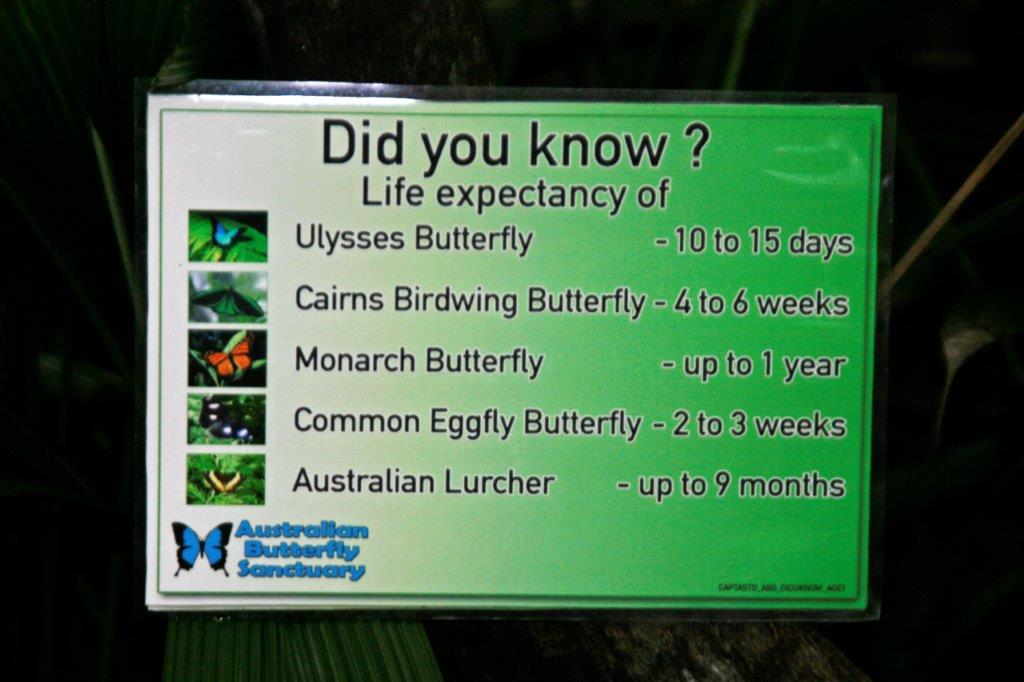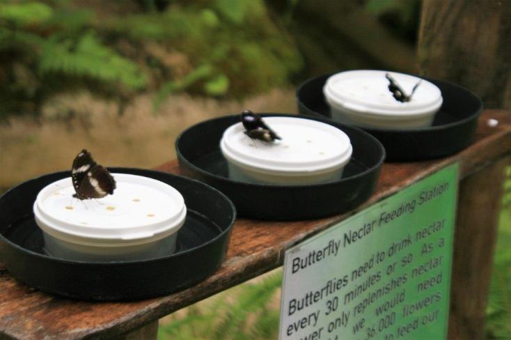 After we walked around for a little while we visited the Butterfly Sanctuary (partly because it was indoors so we wouldn’t get any wetter). They have over 1500 free-flying butterflies. They maintain all their own butterlfy stock with an extensive breeding program. You could also tour the lab with all the jars full of cocoons or caterpillars munching their particular favourite variety of leaves; all of which are grown by the sanctuary.