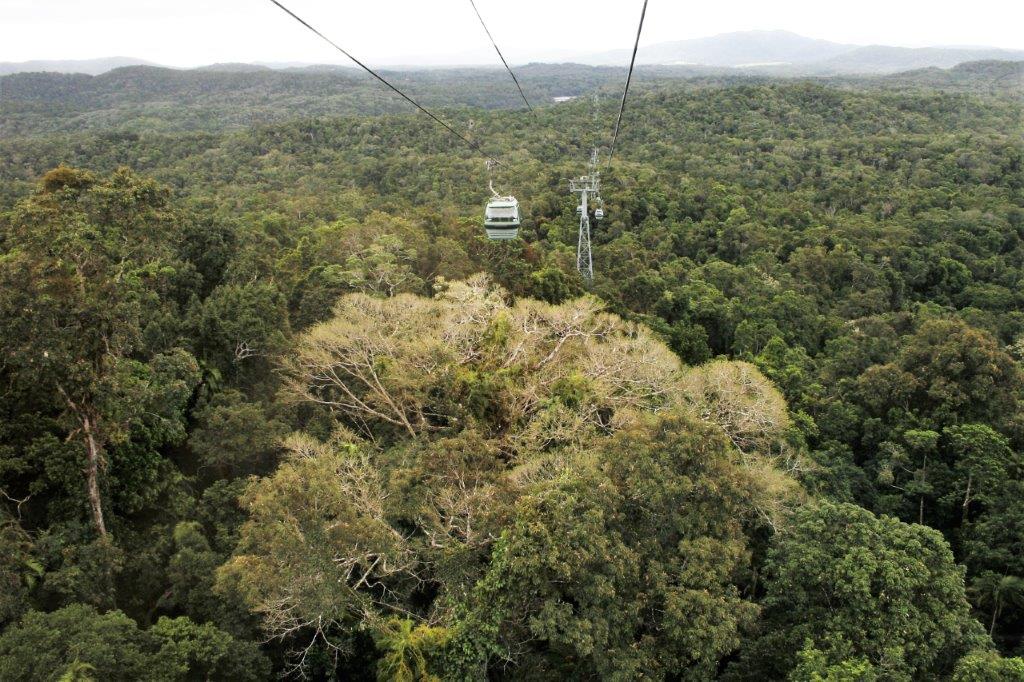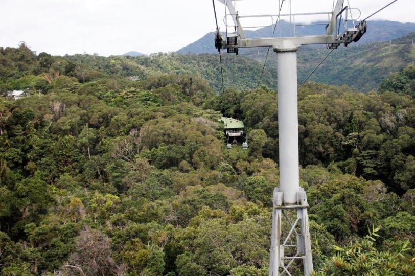 We took a slow meandering walk around town before heading to the tram station. The rain stopped for the majority of our ride over the rainforest canopy but the sky remained overcast. The SkyRail is about 6.5 km long and goes from Karunda up to the summit of Red Peak before dropping down to the Caravonica Terminal at Freshwater.