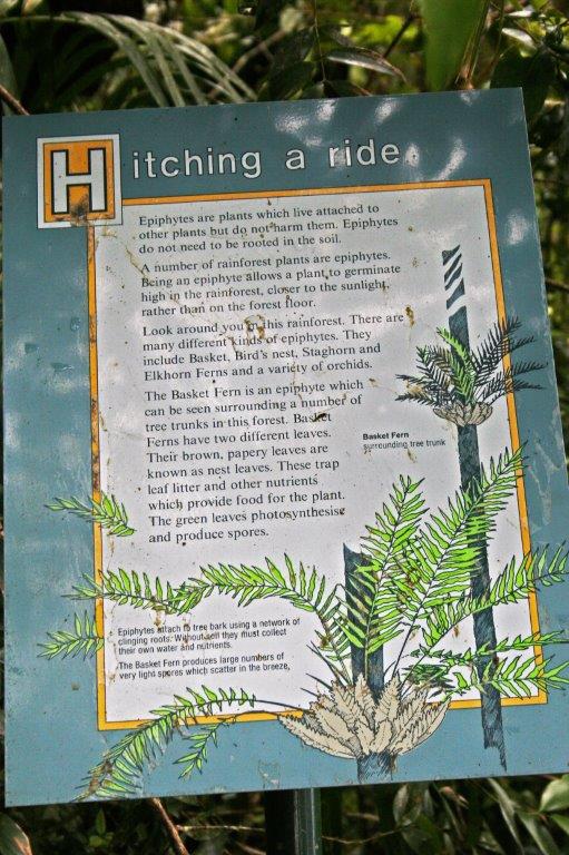 At the Red Peak Station there is a long boardwalk which meanders through the tropical undergrowth past roots, tree ferns and climbing wait-a-while palms. There are rangers available to answer questions or pass along information.