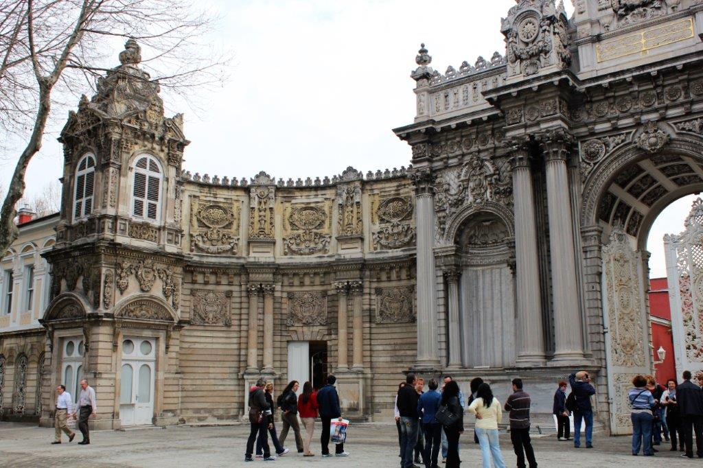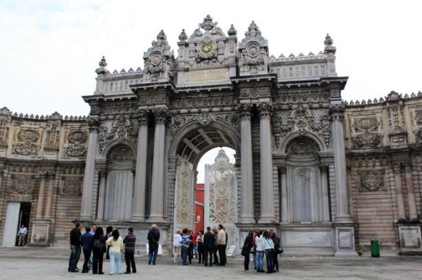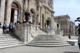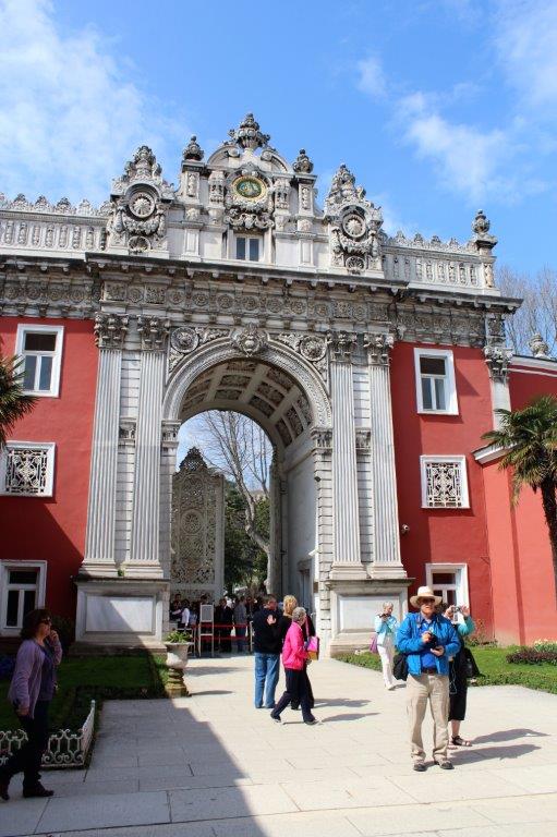 The ship remained docked in Istanbul until five o’clock, so we had another opportunity to see some of the historic sites. This day we visited two of the famous palaces built by the sultans. First was the absolutely massive Dolmabahçe Palace, located on the European side of the Bosporus, which stretches almost 580 m (1990′) along the shore.